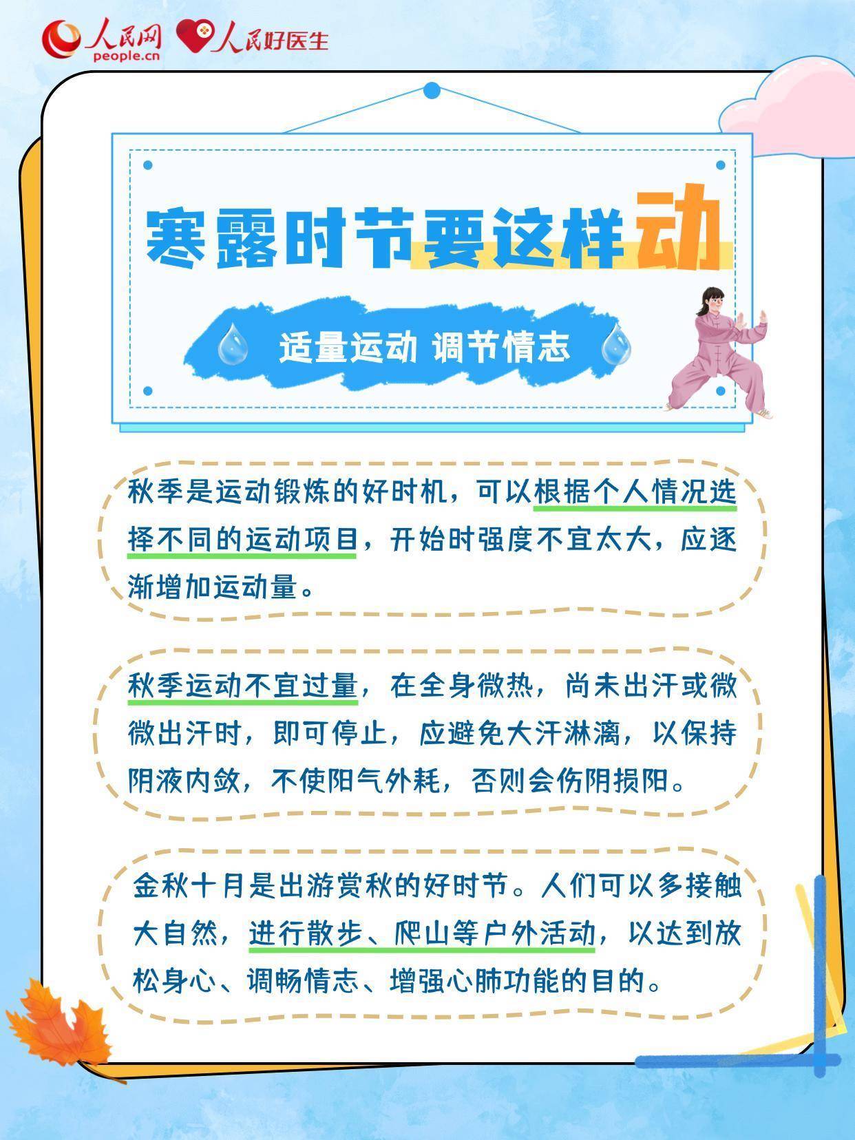 寒露如约而至,标志着深秋的到来,气温持续下降,昼夜温差增大,自然界中的阳气渐收,阴气渐盛。多数人因假日期间,睡眠及饮食规律被打乱,常表现出周身困乏、肠胃不适甚至恶心、阵发性眩晕、焦虑、睡眠差等症状。寒露时节养生应注意哪些要点?